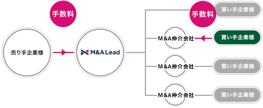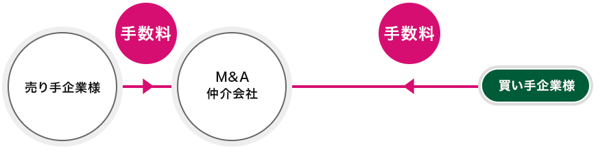 通常M&A仲介会社は自社のネットワークでマッチングを実現することで 売り手企業様・買い手企業様双方から手数料収入を得ます。